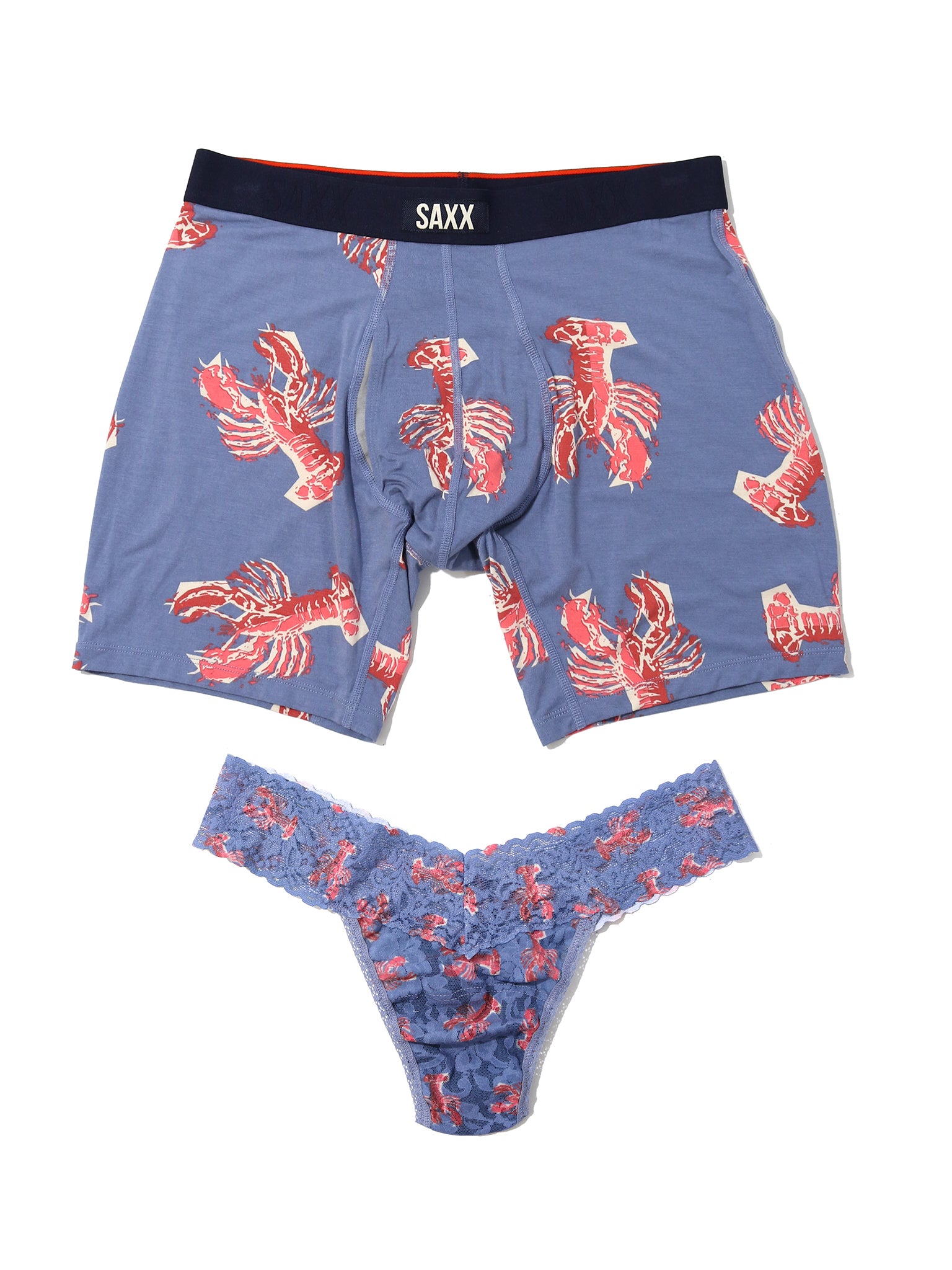 Hanky Panky Women’s Signature Lace® Low Rise Thong And Saxx Super Soft Vibe Boxer Brief Lobster Boil | Lobster Boil